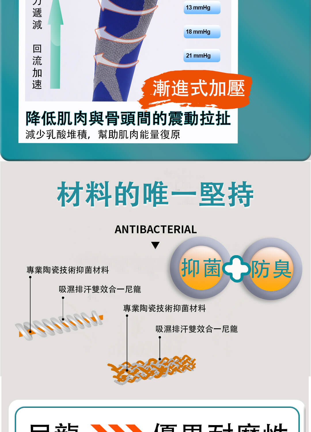 ‧漸進式科學加壓減少乳酸堆積,幫助肌肉復原